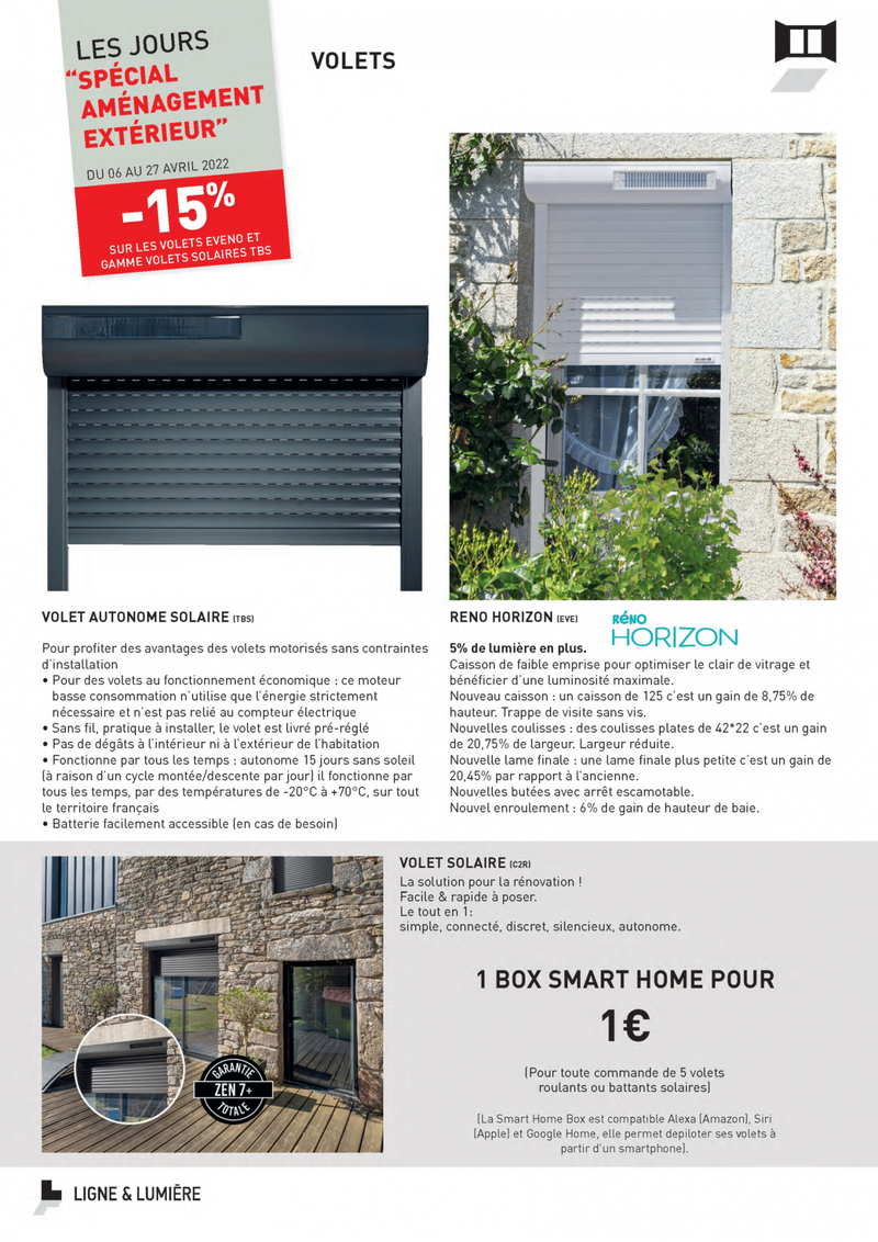 - Volets autonomes solaires, sans fil ou avec caisson de faible emprise. La Smart Home Box pour 1€ à partir de 4 motorisations ou de 4 précadres motorisés solaires C2R achetés.
