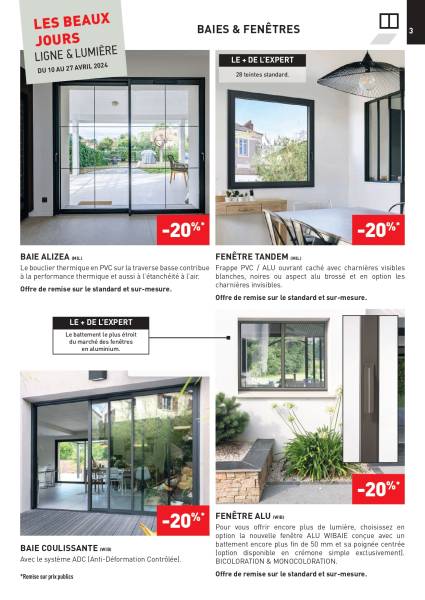 Matériaux Dubos vous offre 20% de remise sur les baies vitrées ALIZEA et fenêtres TANDEM, standards ou sur-mesure de chez Millet.