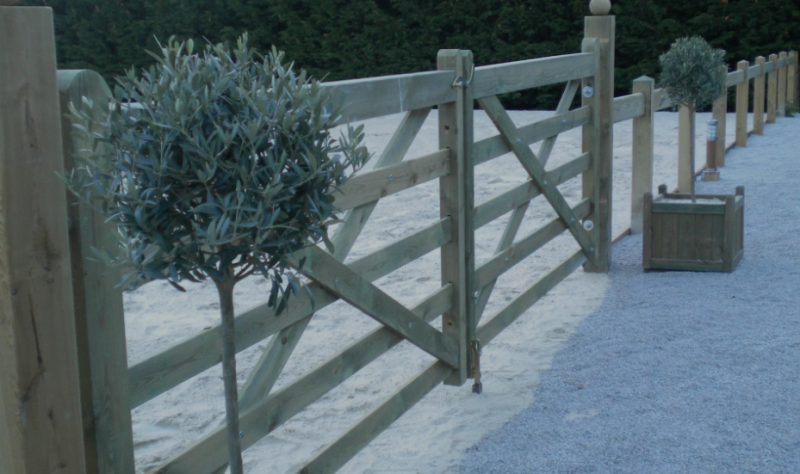 Grâce à un traitement anti UV et hydrophobe, le portail en bois est résistant.