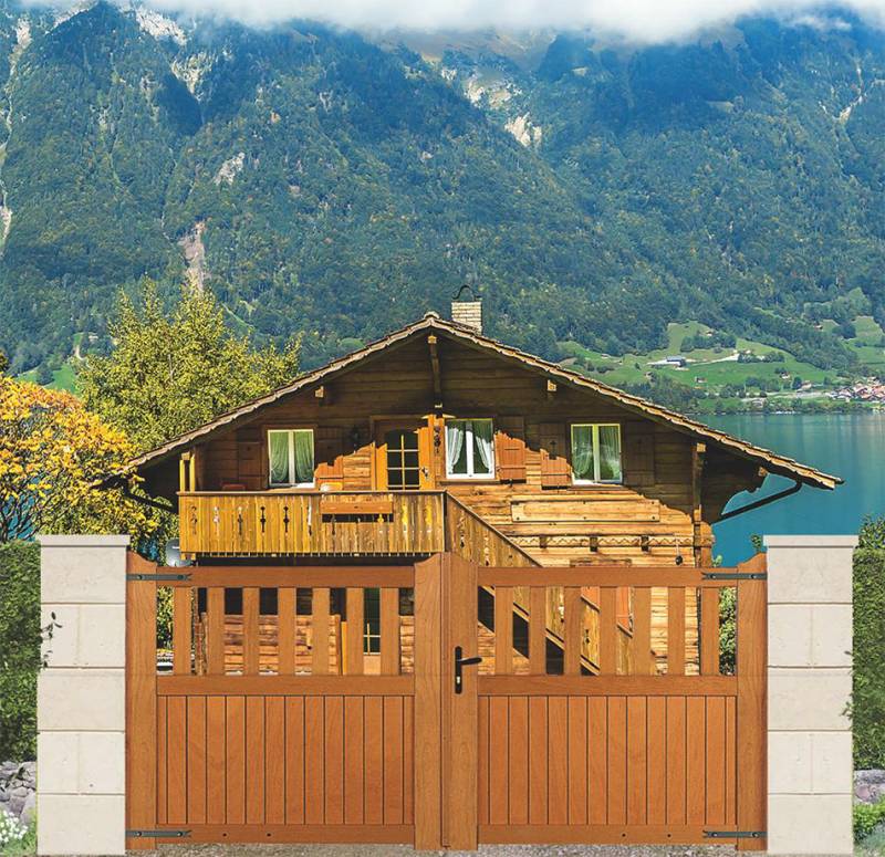Traité à haute température, le portail en bois acquiert une excellente stabilité dimensionnelle.