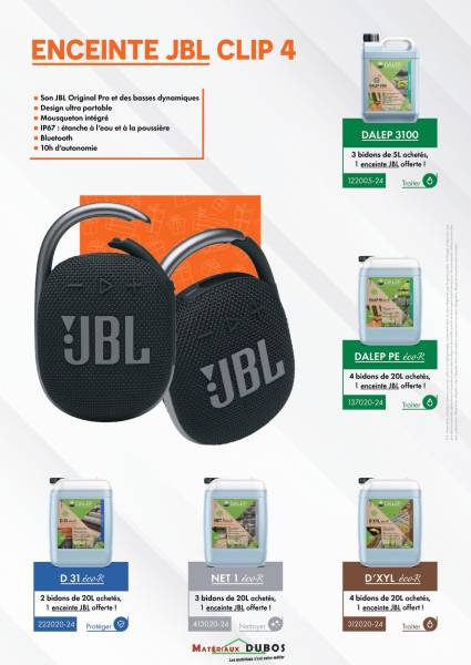 Remportez une enceinte JBL Clip 4 pour l'achat de: