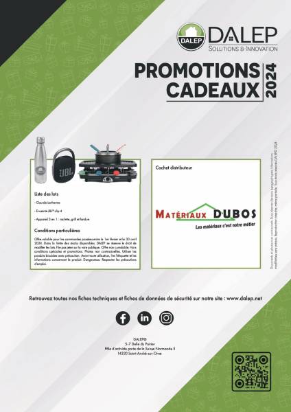 Du 1er février au 30 avril 2024, profitez de cadeaux exceptionnels de la part de notre fournisseur partenaire Dalep