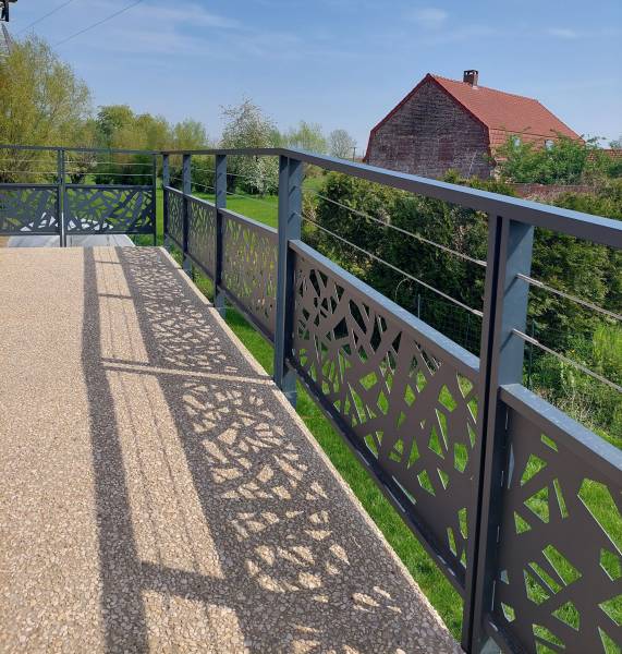 - Tôle avec motifs découpée au laser jusqu’à la main courante